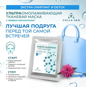 Новое WOW-средство для мгновенного лифтинга! Теперь все свойства ЖИВОГО КОЛЛАГЕНА упакованы в тканевую маску! Она содержит мощную концентрацию эффективных компонентов для того, чтобы кожа сияла молодостью, здоровьем и красотой!